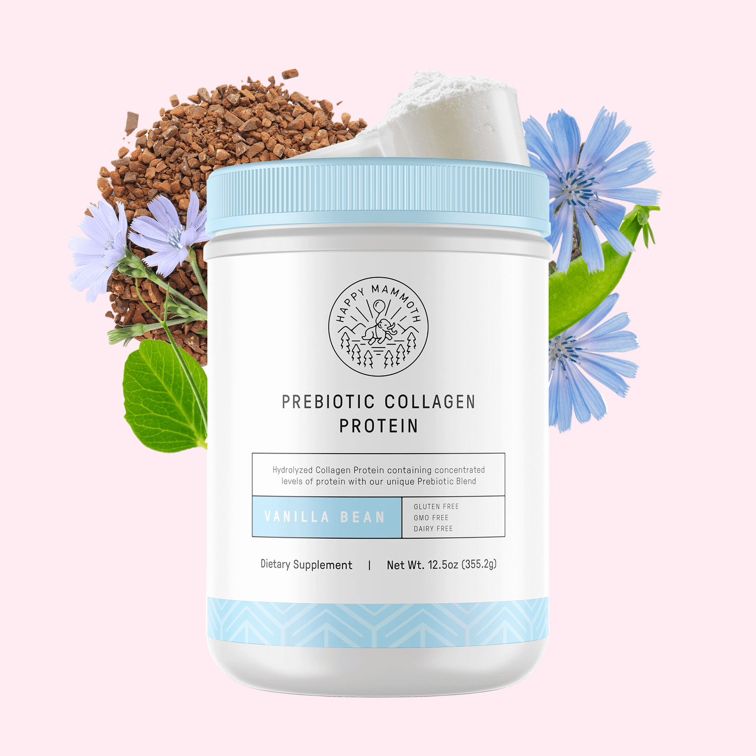 Meet the all-in-one beauty and wellness supplement: Happy Mammoth's Prebiotic Collagen Protein. This innovative powder goes beyond ordinary collagen by uniting three essential benefits into one daily ritual. We've combined potent, clinically-studied collagen with gut-nourishing prebiotics and clean plant protein to help you achieve radiant skin from the inside out, while simultaneously supporting digestive health and sustained energy.